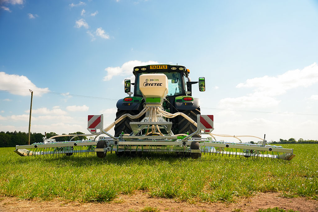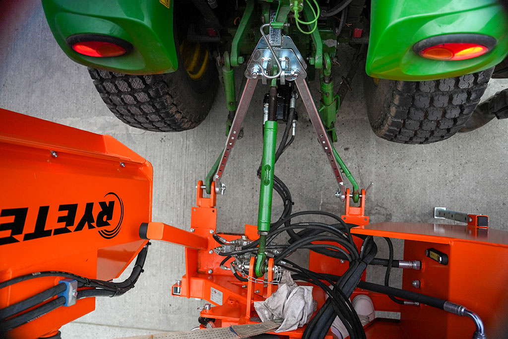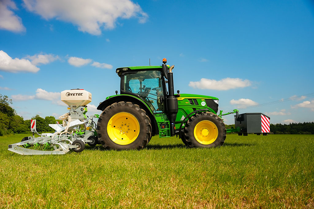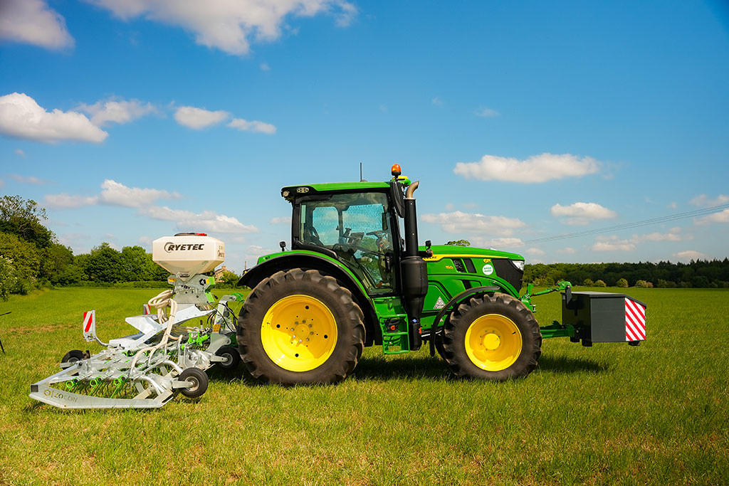 La sembradora se alimenta directamente de la batería del tractor, lo que garantiza un funcionamiento constante y fiable en el campo.