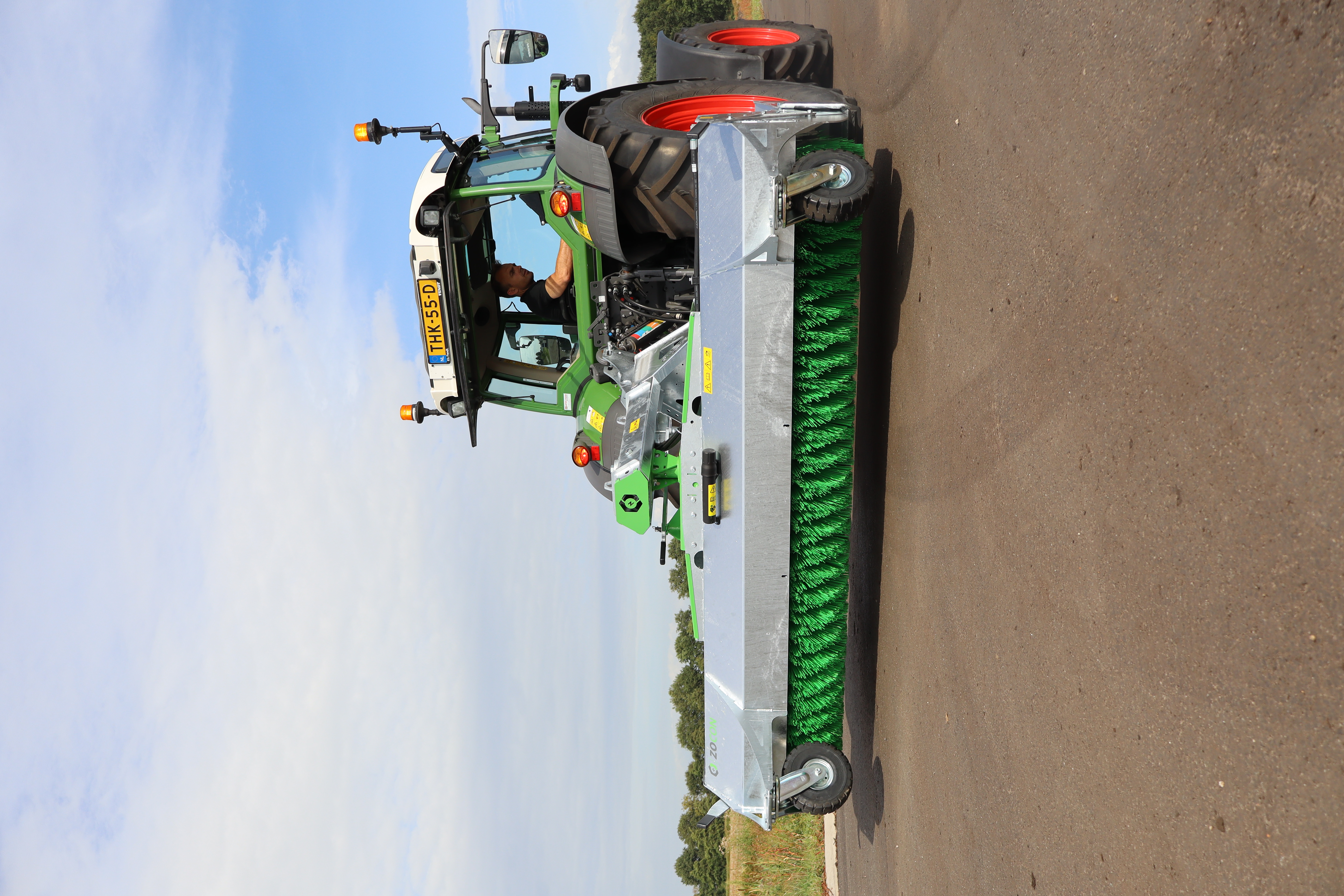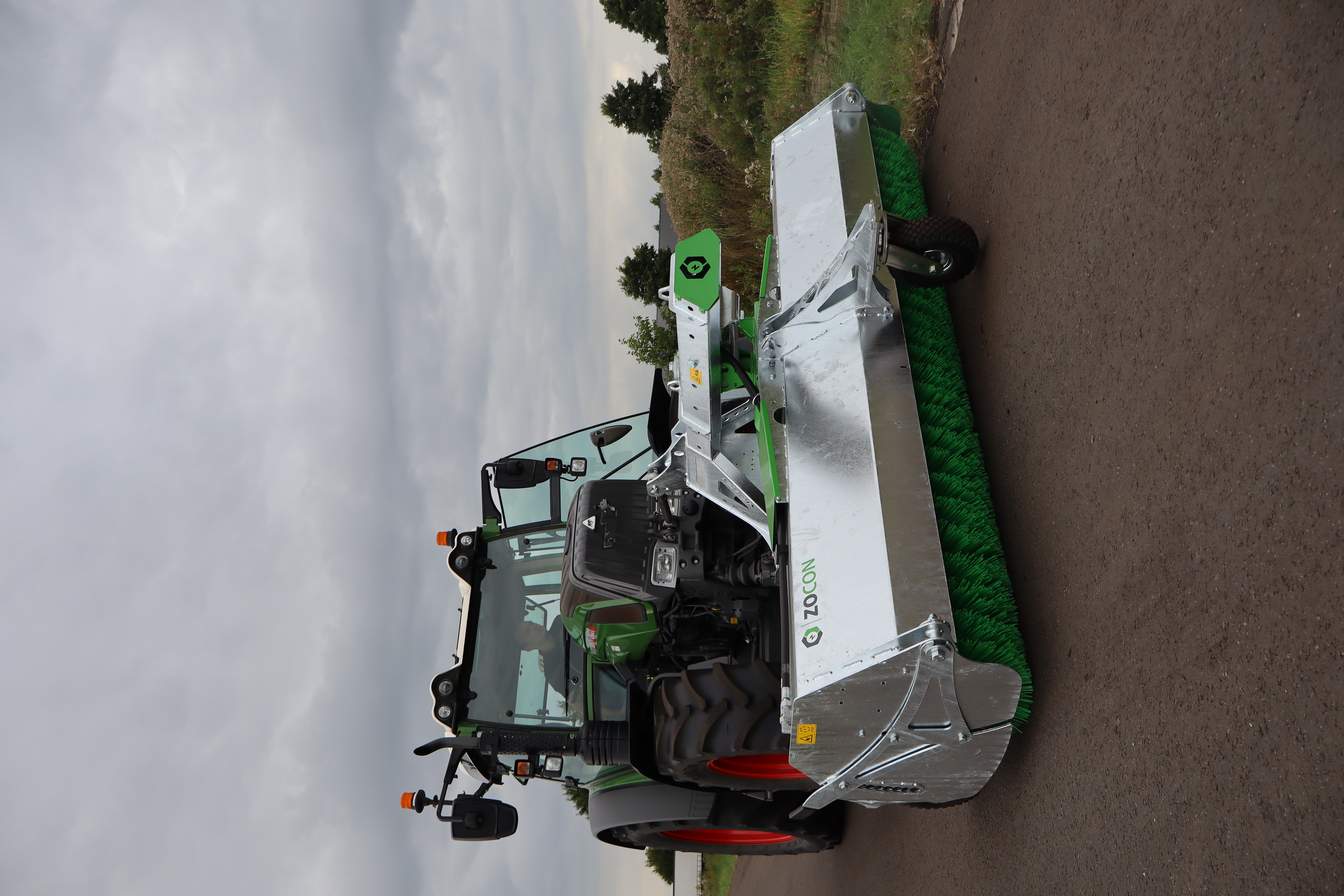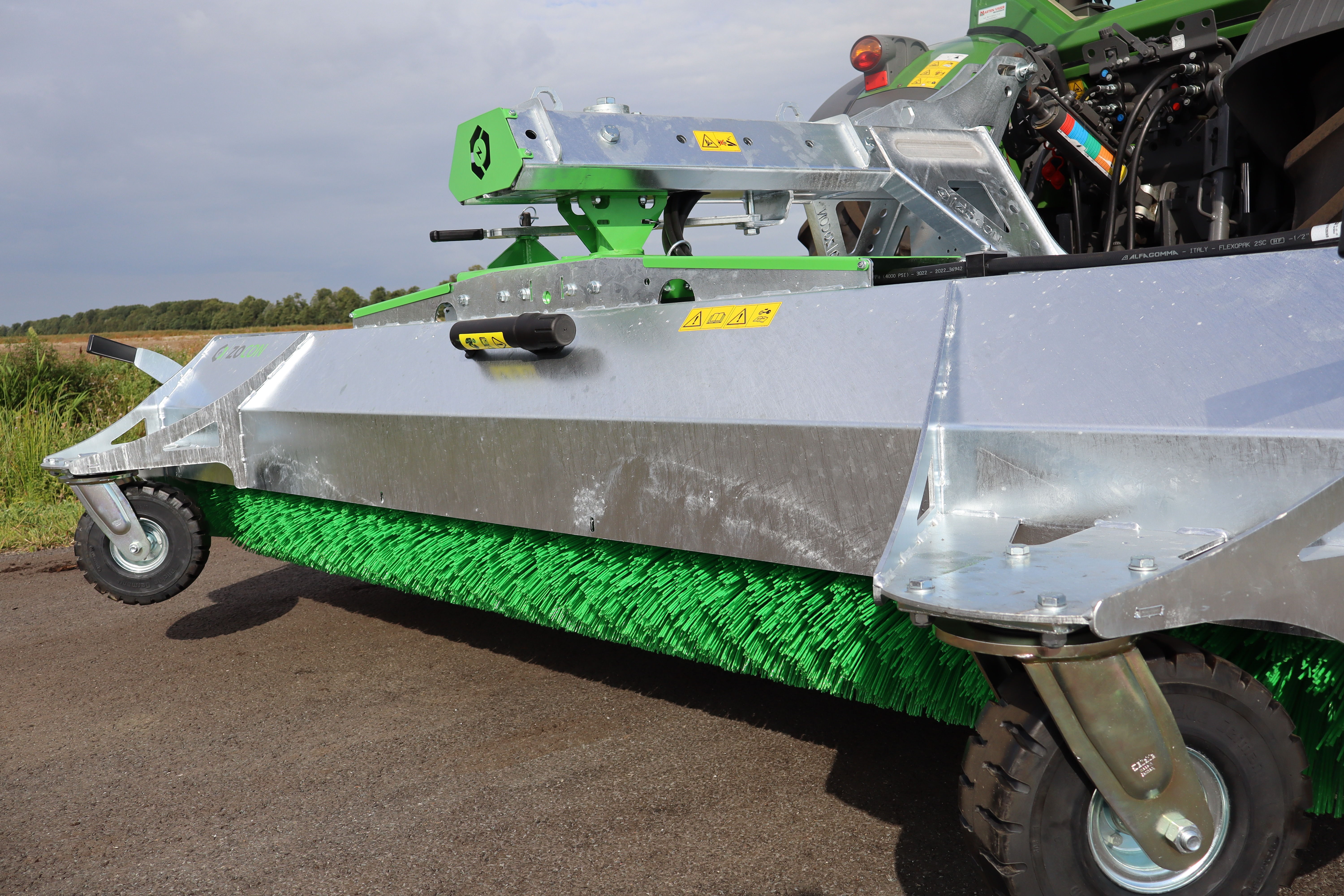 Disponible con enganche de tres puntos con sistema de cambio rápido para montaje en la parte delantera o trasera del tractor. También disponible con un bastidor monobloque especial para cargadoras de ruedas con sistema de péndulo para más de 100 cargadoras de ruedas diferentes. El bastidor monobloque también se puede conectar al enganche de tres puntos, lo que permite utilizar la barredora en ambos sentidos.