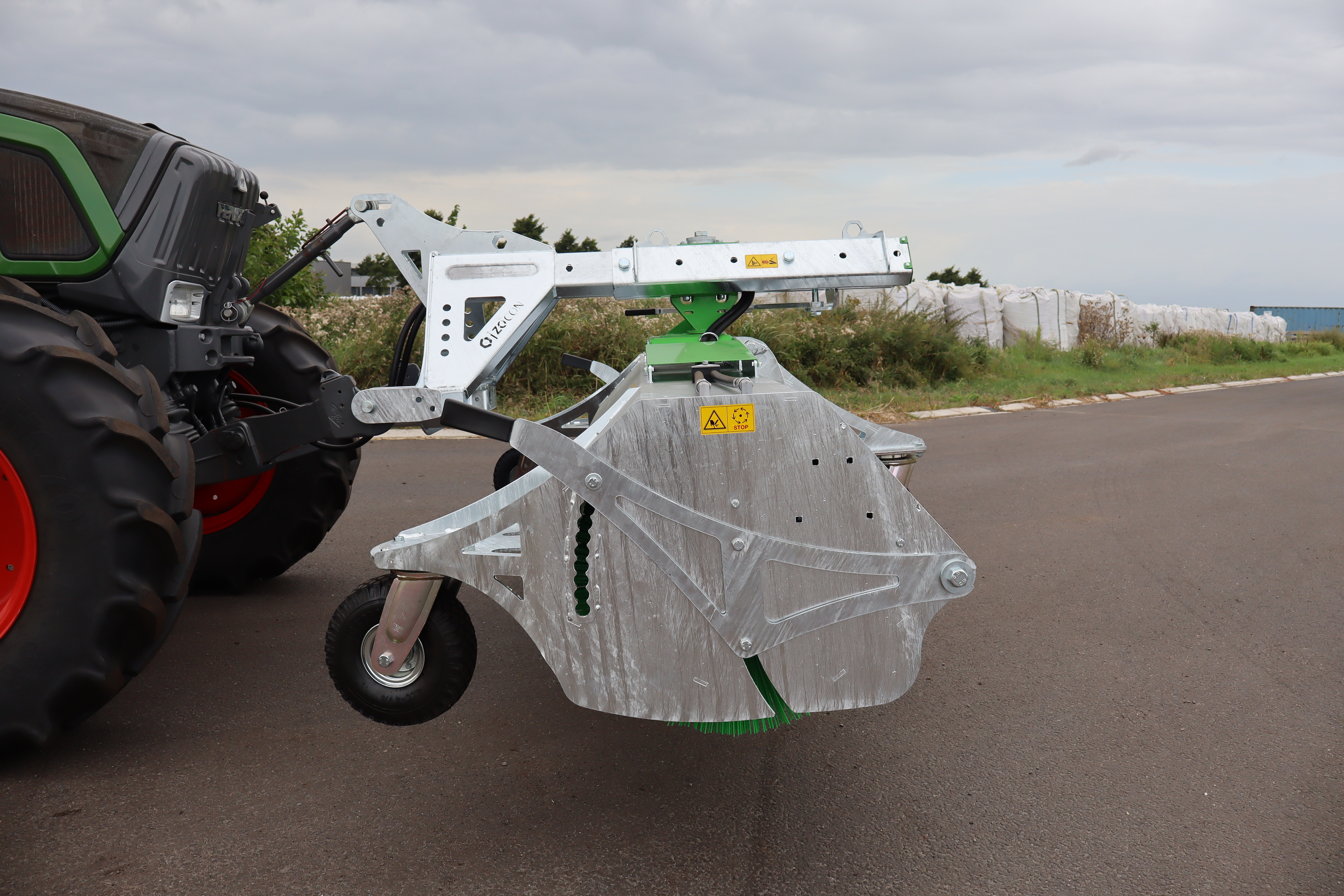 La barredora puede construirse de varias maneras para acoplarse perfectamente a un tractor o cargadora de ruedas. Se pueden añadir opciones adicionales posteriormente.