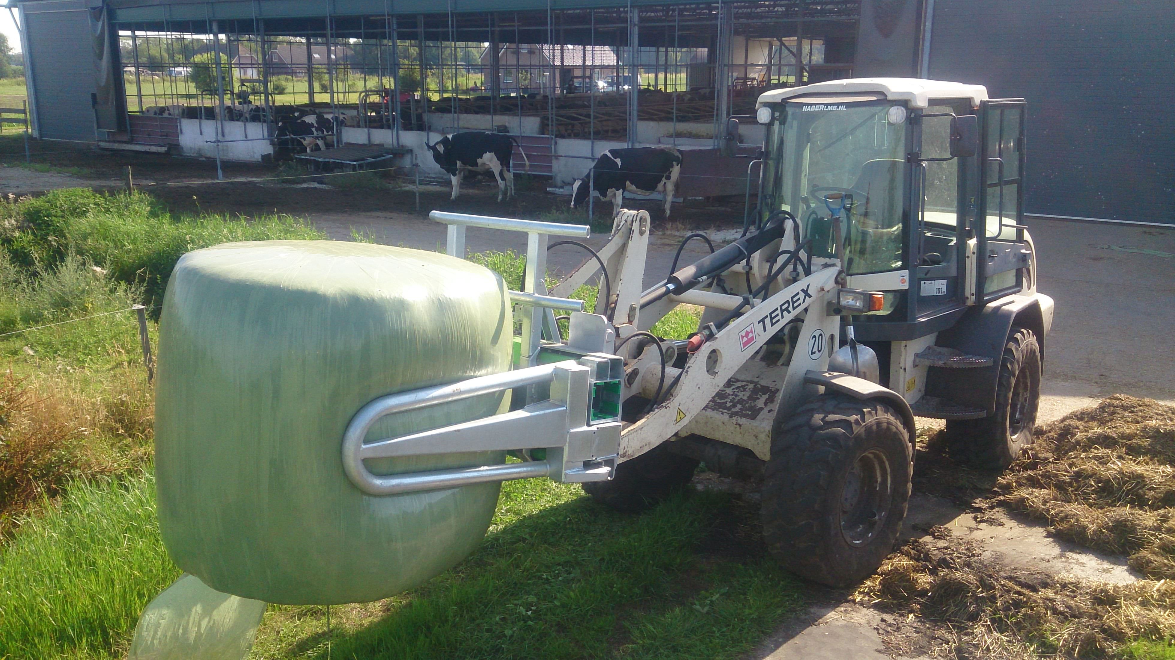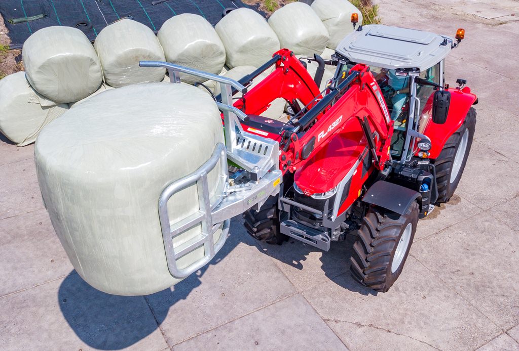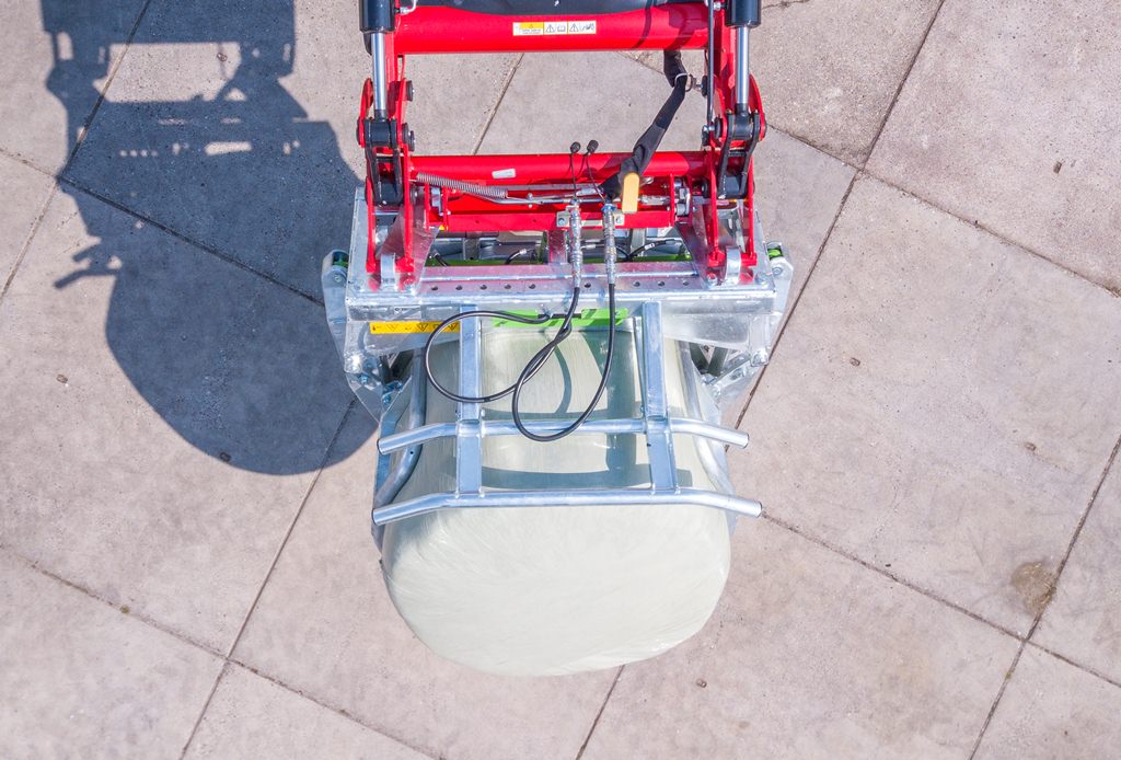 RB-01, ideal when working exclusively with round bales, movable clamping arms clamp securely around the entire surface, even pressure will not deform the bale.