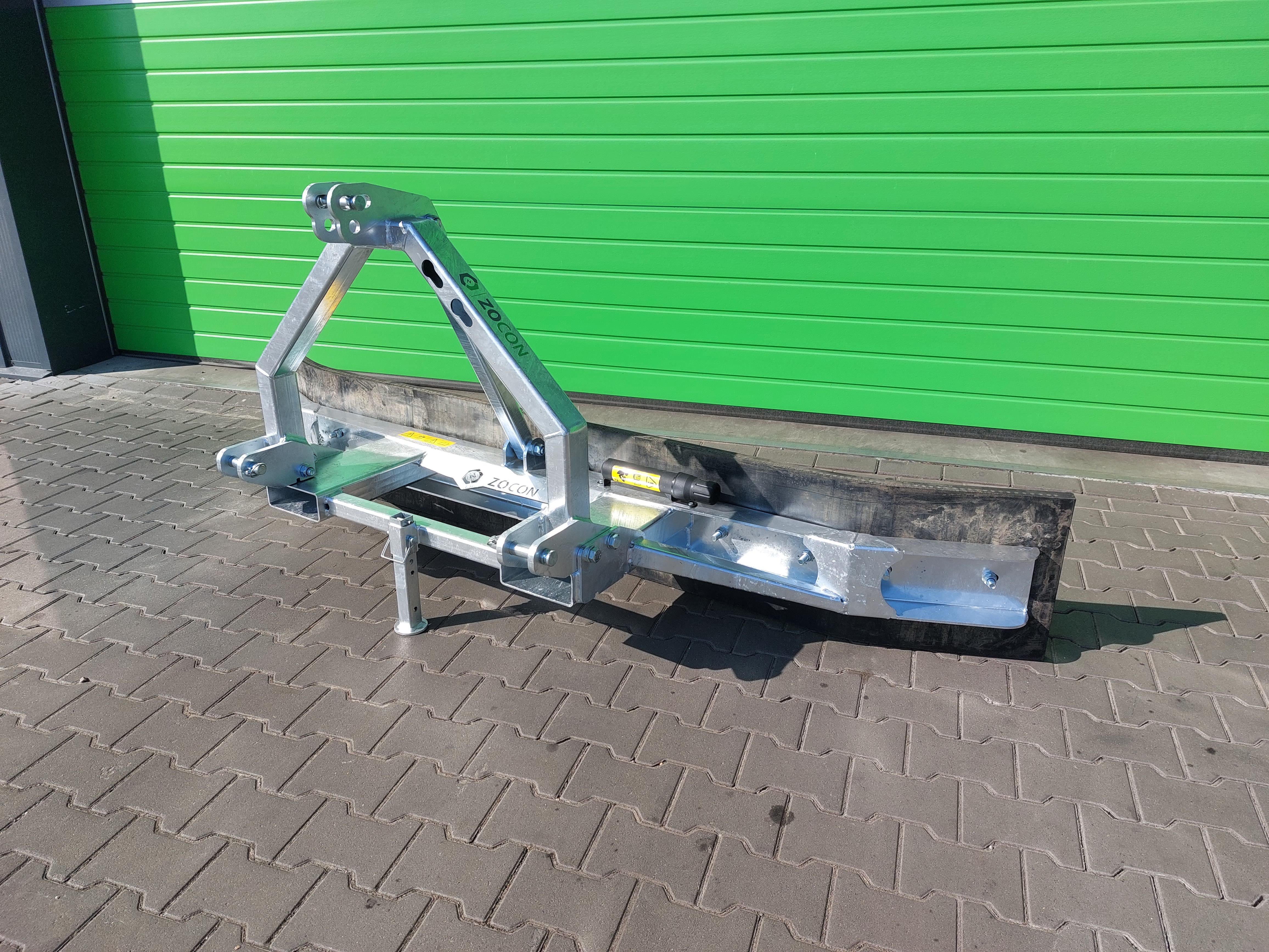 • Hydraulic rubber scraper, blade pivots left and right up to 60 degrees via hydraulic system, requiring a hydraulic coupling, with mechanically adjustable corners.