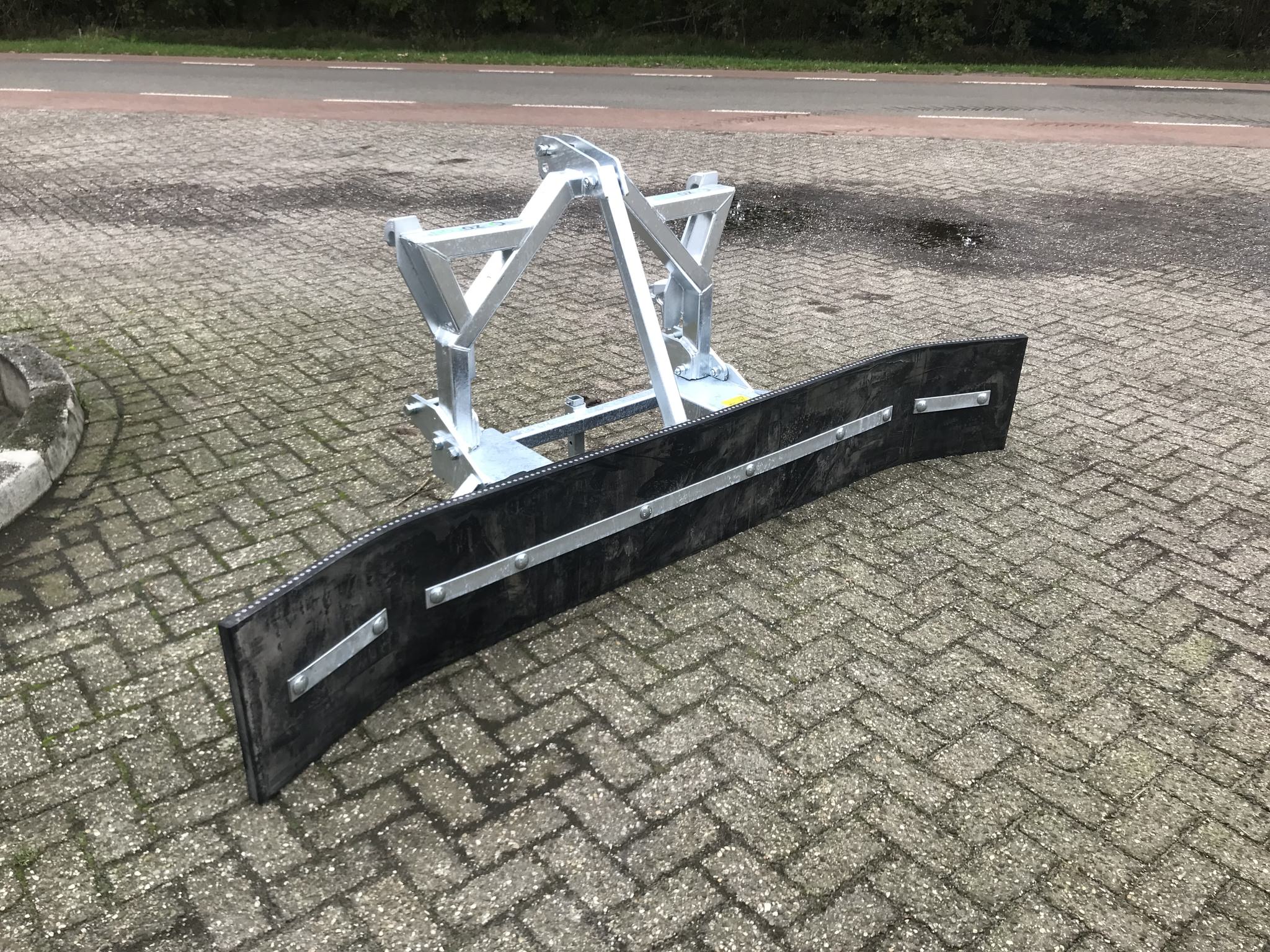 The rubber scrapers can be assembled with a three-point linkage and forklift input, enabling use on the front or rear of tractors as well as forklifts. Alternatively, a universal attachment frame allows mounting to more than 100 different wheel loaders.